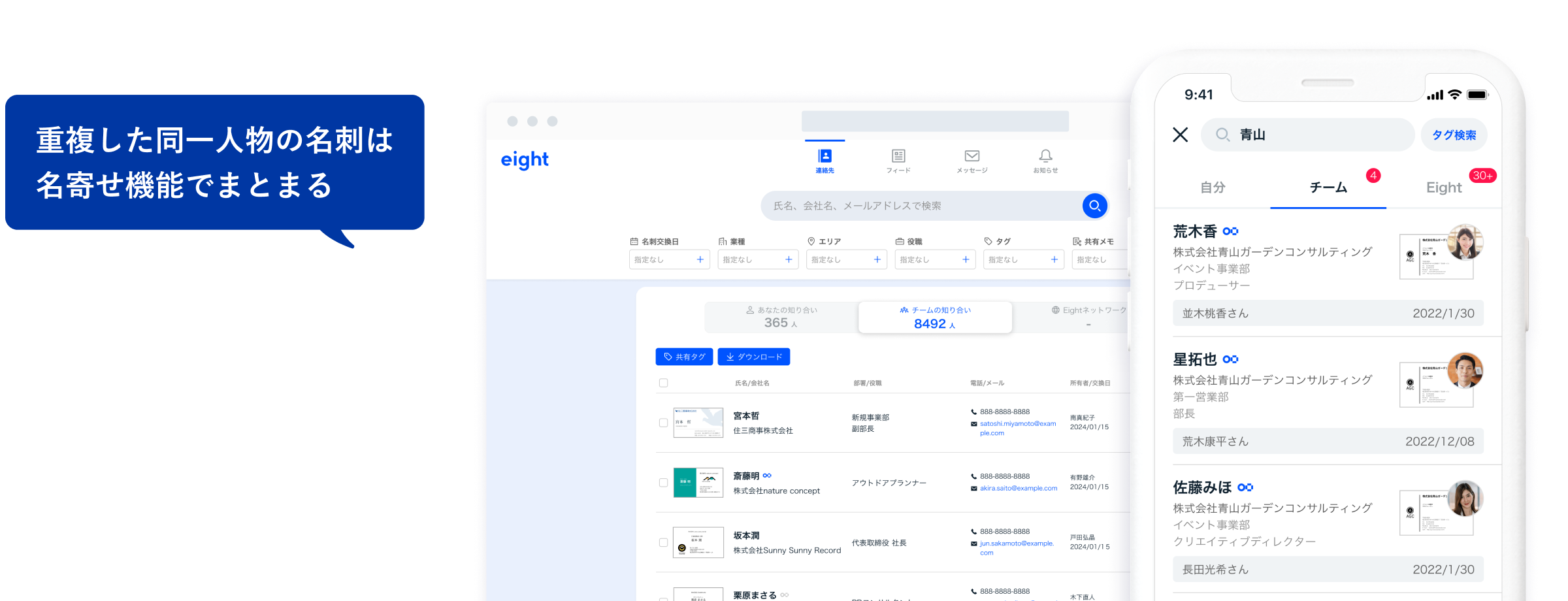 Eight Teamは、法人向け名刺管理サービスの業界シェアNo.1のSansanが提供する、