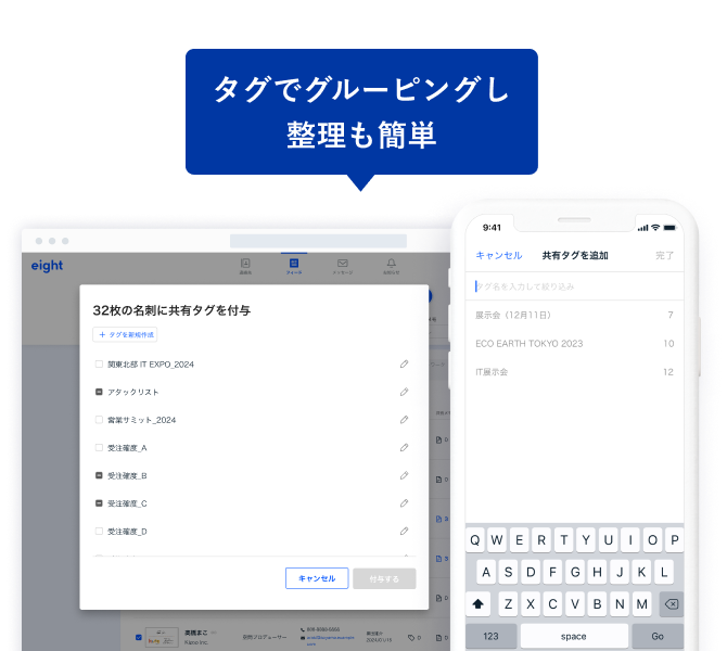 Eight Teamは名刺を複数人で共有できる法人向けサービスです。