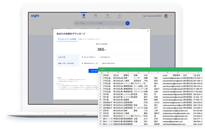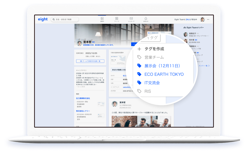 名刺情報にタグを付けて、グループ化することが可能。キーマンや業種別などの